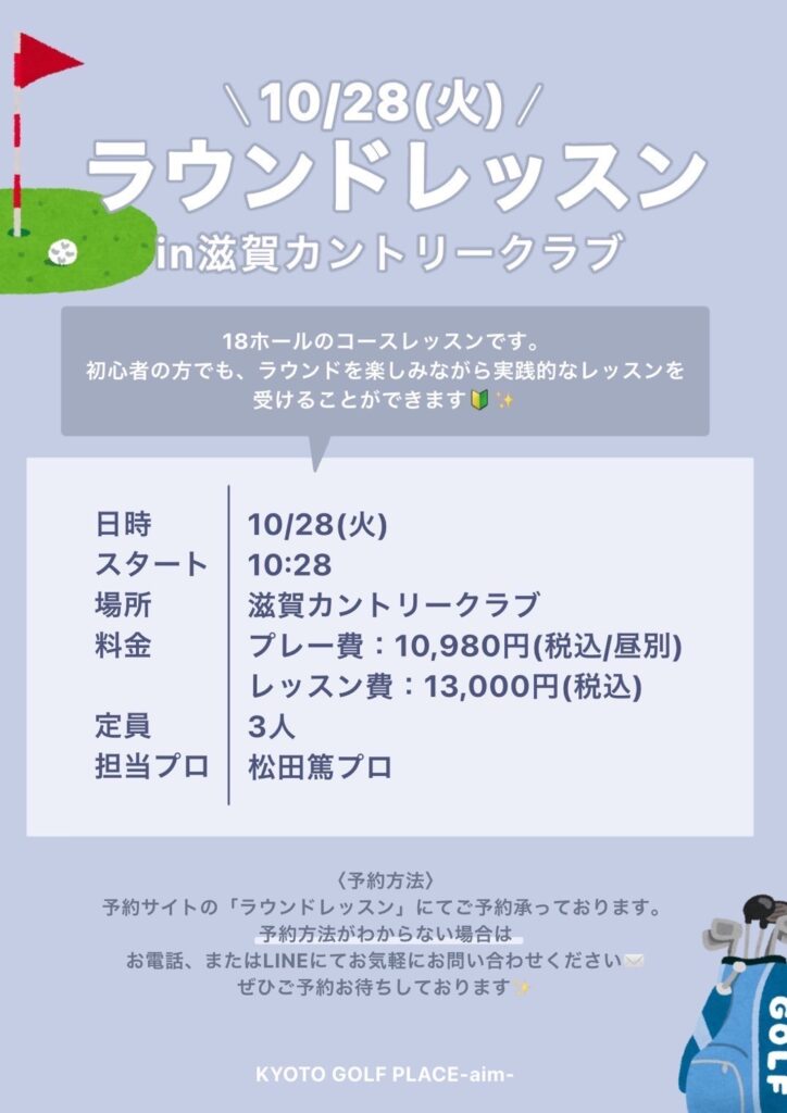 予約サイトの「ラウンドレッスン」にてご予約承っております✅