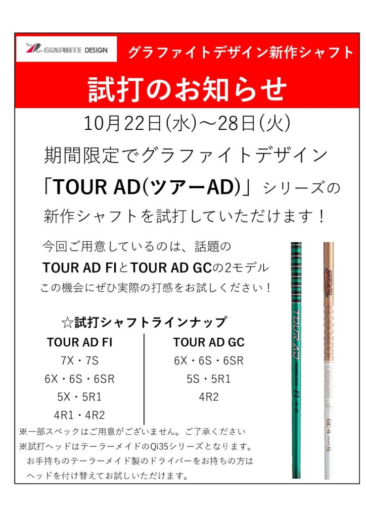 今日から28日(火)までグラファイトデザインの新作シャフト2モデルの試打イベントを開催してます!