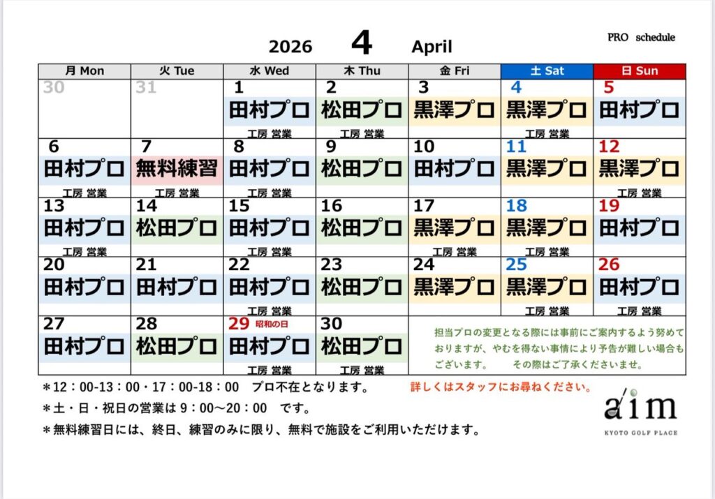 🌸4月の担当プロ・工房スケジュールのお知らせです🌸